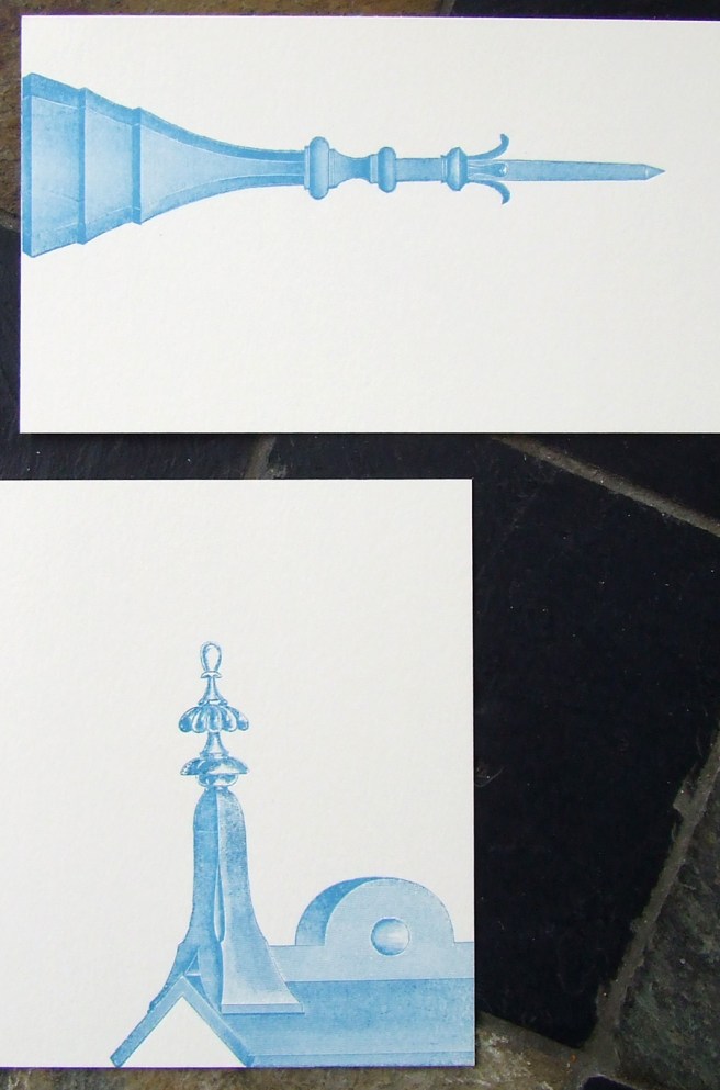 I also printed a really fun purple version of my ornaments card for my little sister (remember — you can order any design in any color, it only takes a couple weeks), and finally got a good run out of “Tablescape” (below), one of the first designs I created but haven’t been able to get to print well yet. (I think the cooler, less humid weather helped significantly, as well as my getting better at knowing the correct ink consistency and pressure.) So, even though I’ve been a total slacker on the blogging front, I’ve gotten a lot done!