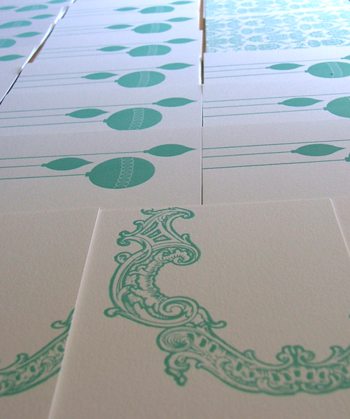 A couple weeks ago all I wanted to do was print in this fabulous robin’s egg blue. Dandelions! Damask! Frames! Ornaments! (Yup, holiday greetings are on their way…) They all looked amazing in this color. This weekend, I finished them up (many got a pop of red!) and folded and packaged the one color designs while the rest dry. Enjoy!