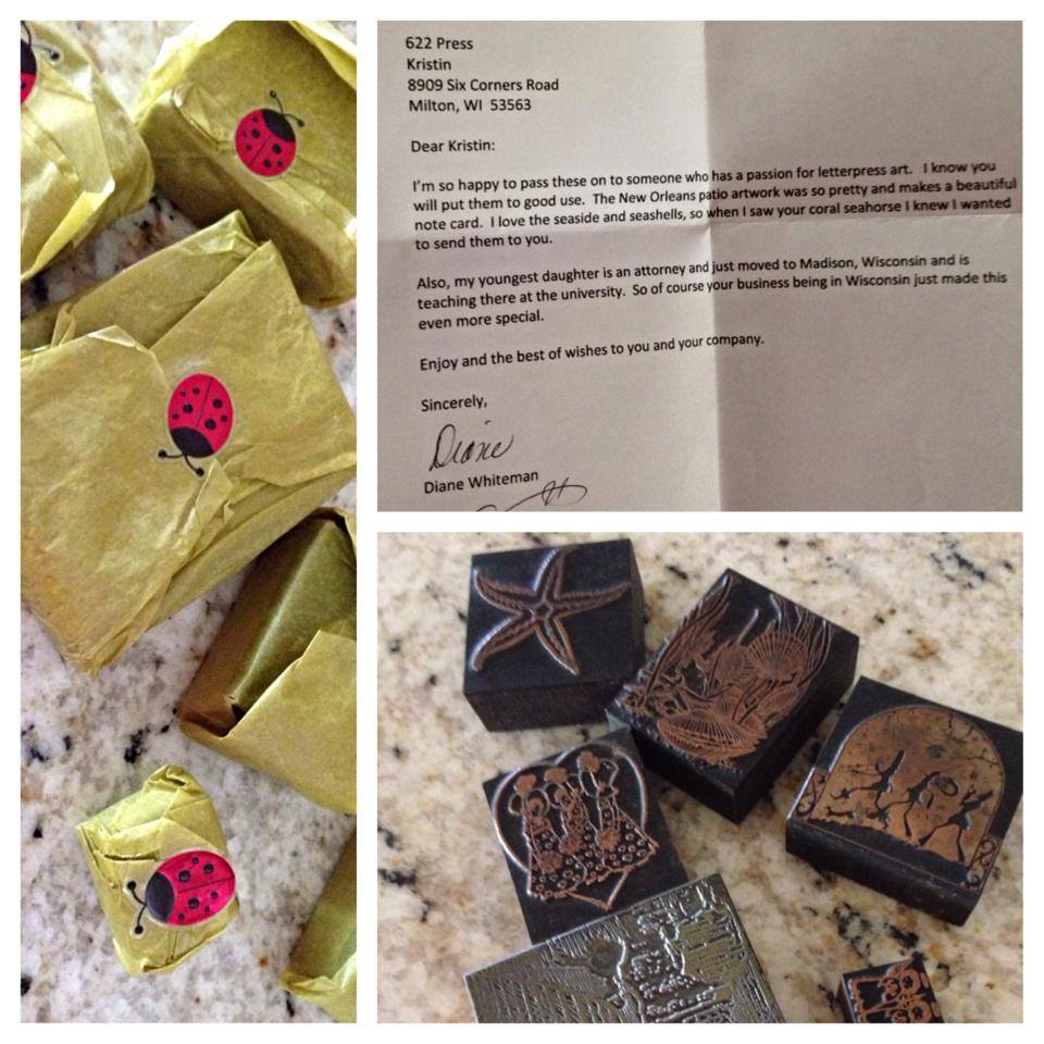 She asked if I wanted the remaining cuts but didn’t mention a price, so I sent her my address and wasn’t sure what would happen. A week later, a box of preciously wrapped vintage printing plates arrived with the loveliest letter.