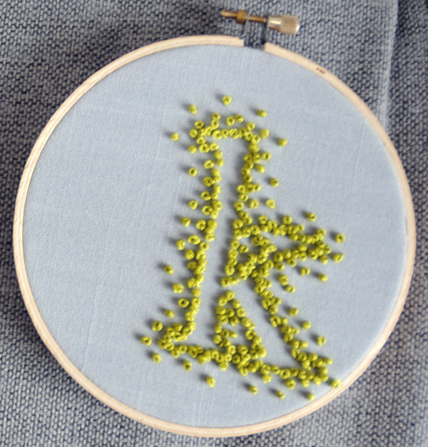 As promised, here are my experiments in embroidery! I started by finishing a project I had started last winter… beleive it or not those satin stitches took FOREVER. I do love the results and have proudly listed it in my second etsy shop, although I’d be happy to keep it too! My first brand new design began with a monogram. I don’t think it was quite as successful, so I’m going to try the idea with a different stitch next.