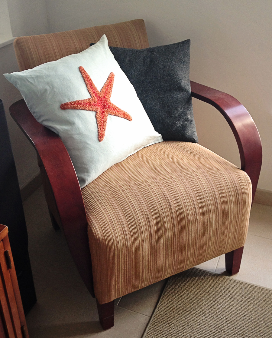 Some of the legs are a little crooked, some are a little bulgy, and the overall shape certainly isn’t a geometrically perfect star, but I like her and she adds the perfect touch. These days she’s happily keeping watch over our living room, right next to the window that looks out over the ocean!