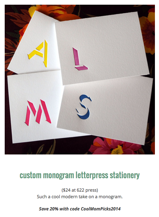 Several of the invitations we printed this year were featured on Wedding Lovely, a blog and wedding resource site that has been incredibly supportive of 622 press over the years. Our shadow monogram stationery was featured in Cool Mom Picks’ annual gift guide, which was far and away the biggest editorial feature I’ve had to date, and prompted quite a few orders this winter.